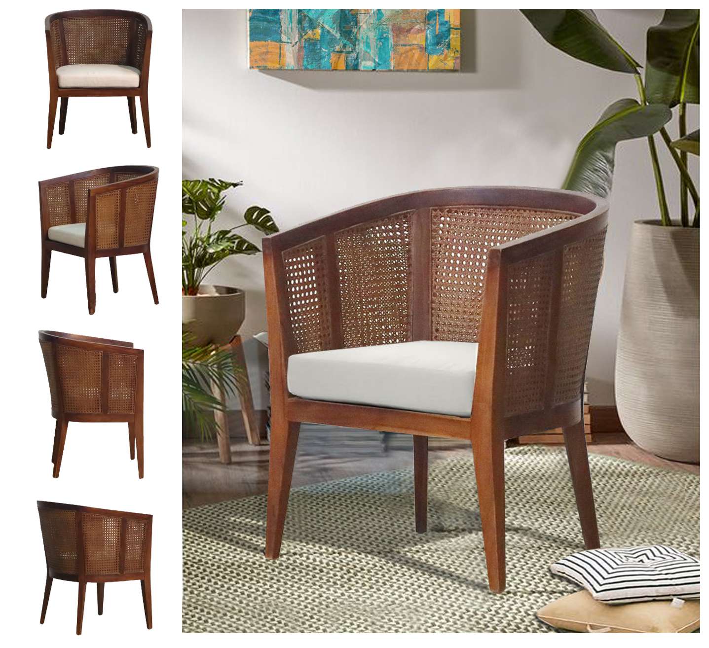Material : Plantation Teak + Rattan + Fabric