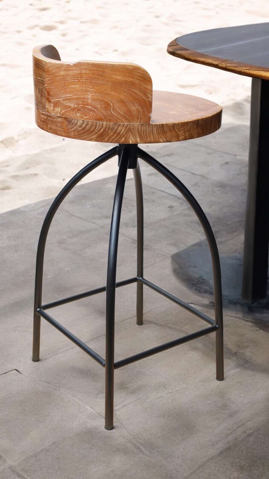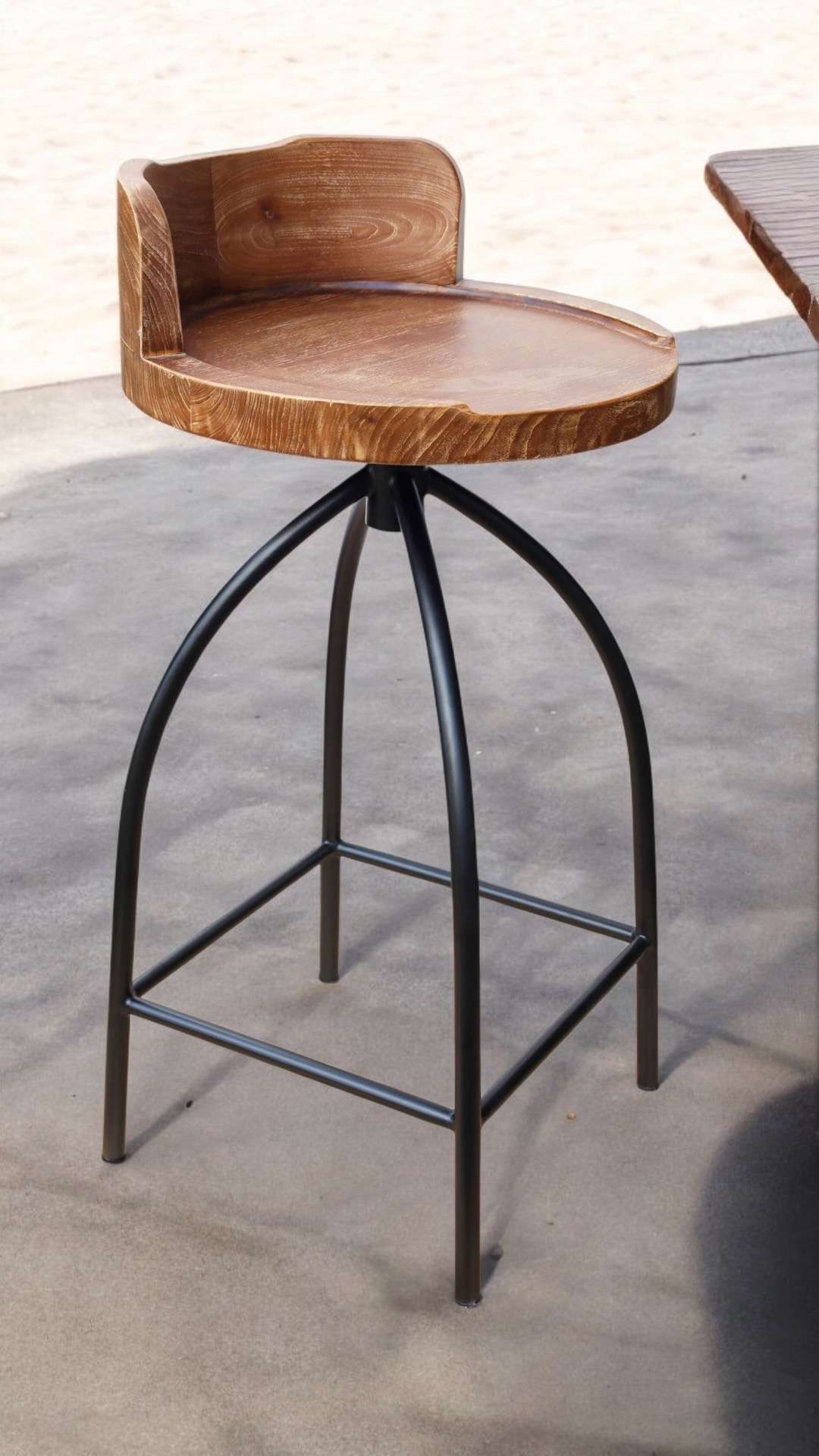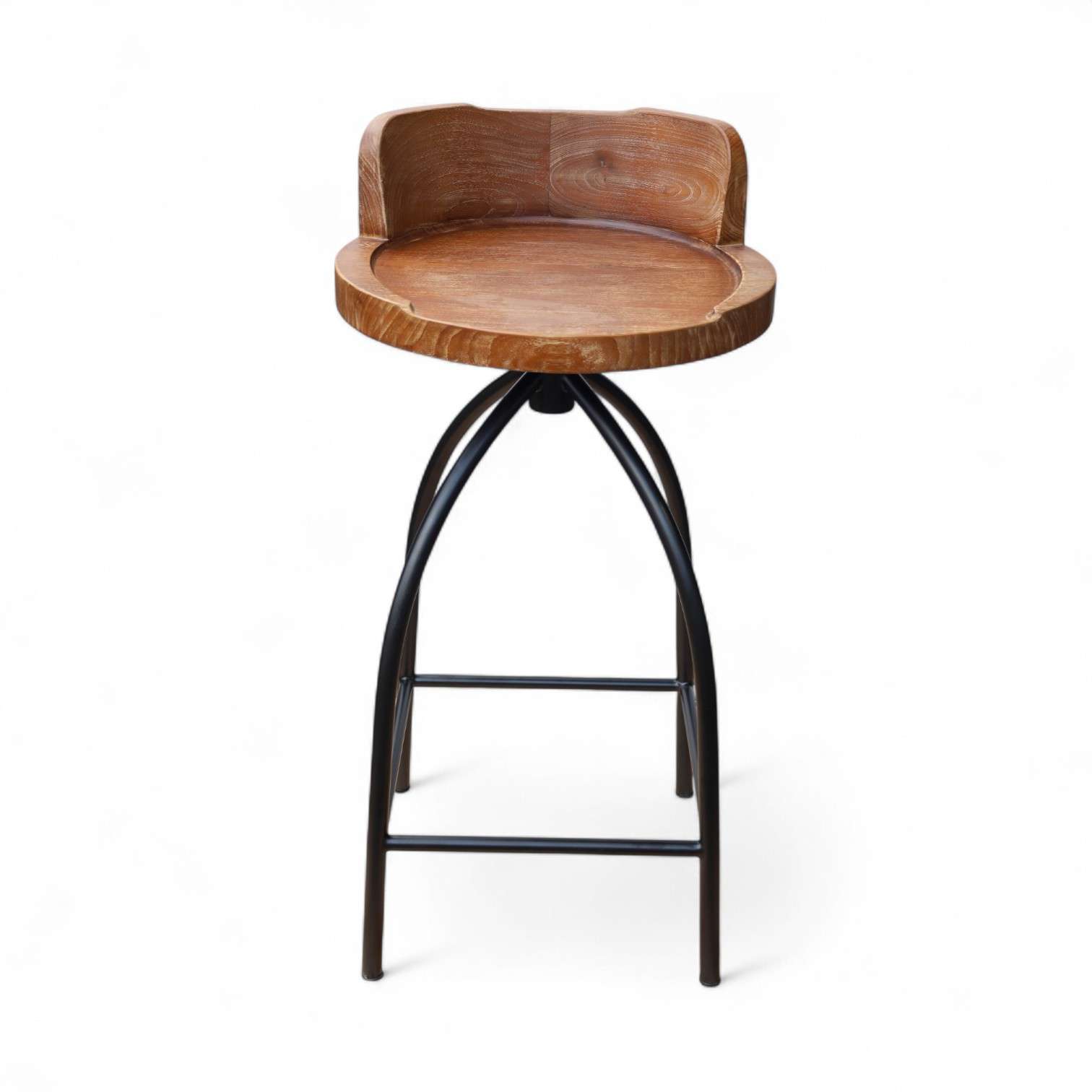 Material : Plantation Teak + Metal Wood Color : Rustic Walnut Less Wash " F " Spesification : D 50 X H 100 ( Seat Height 83 ) cm