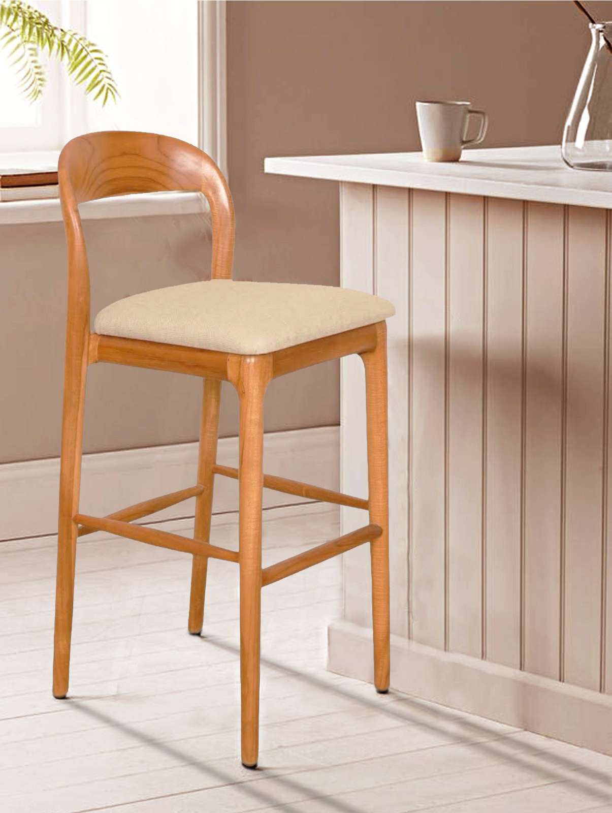 Material : Plantation Teak + Fabric Wood Color : Natural Fabric Color : Sunbrella Fabric ( Beige ) Spesification : L 40 X W 43 X H 100 cm