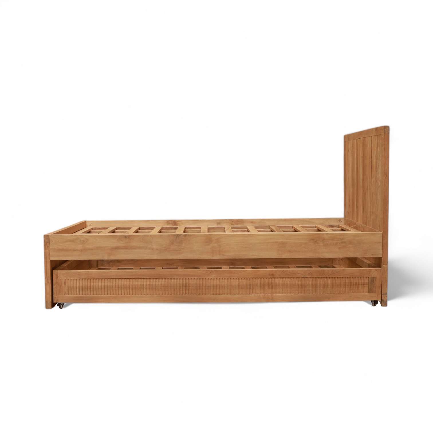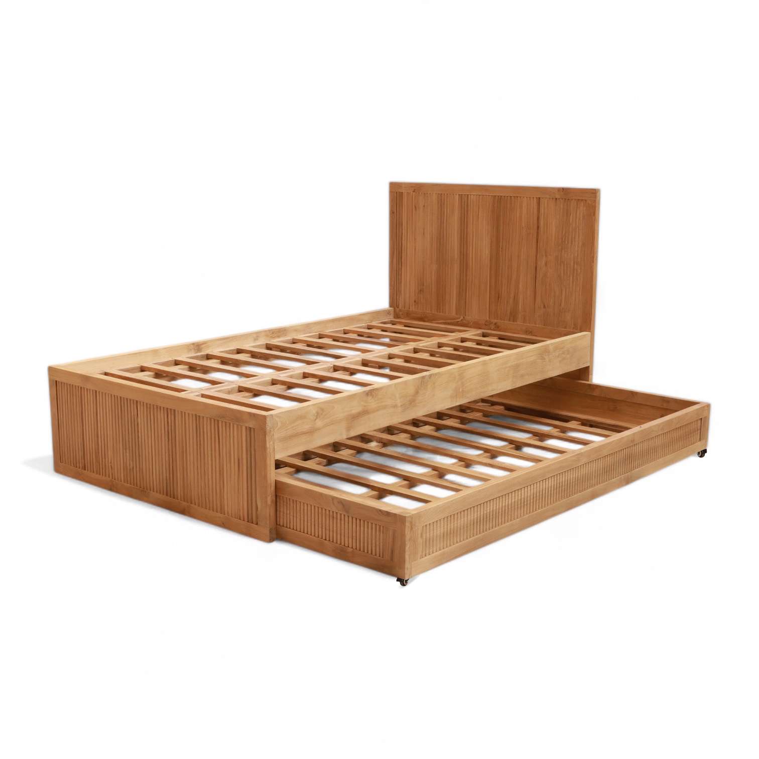 Bed " RAMON " With Sliding Mattress Under With Wheels Plantation Teak