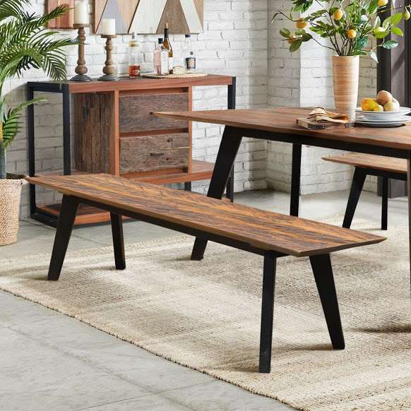 Bench With Suar Wood And Iron Legs