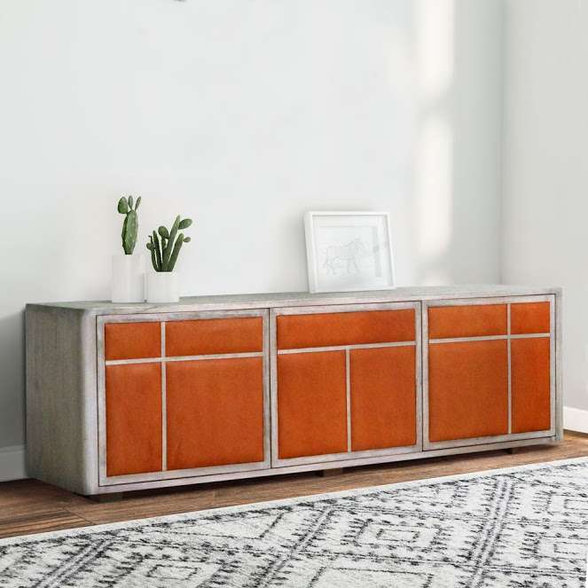 Material : Plantation Teak Wood Color : Rustic Grey Leather Color : Orange