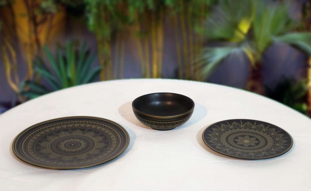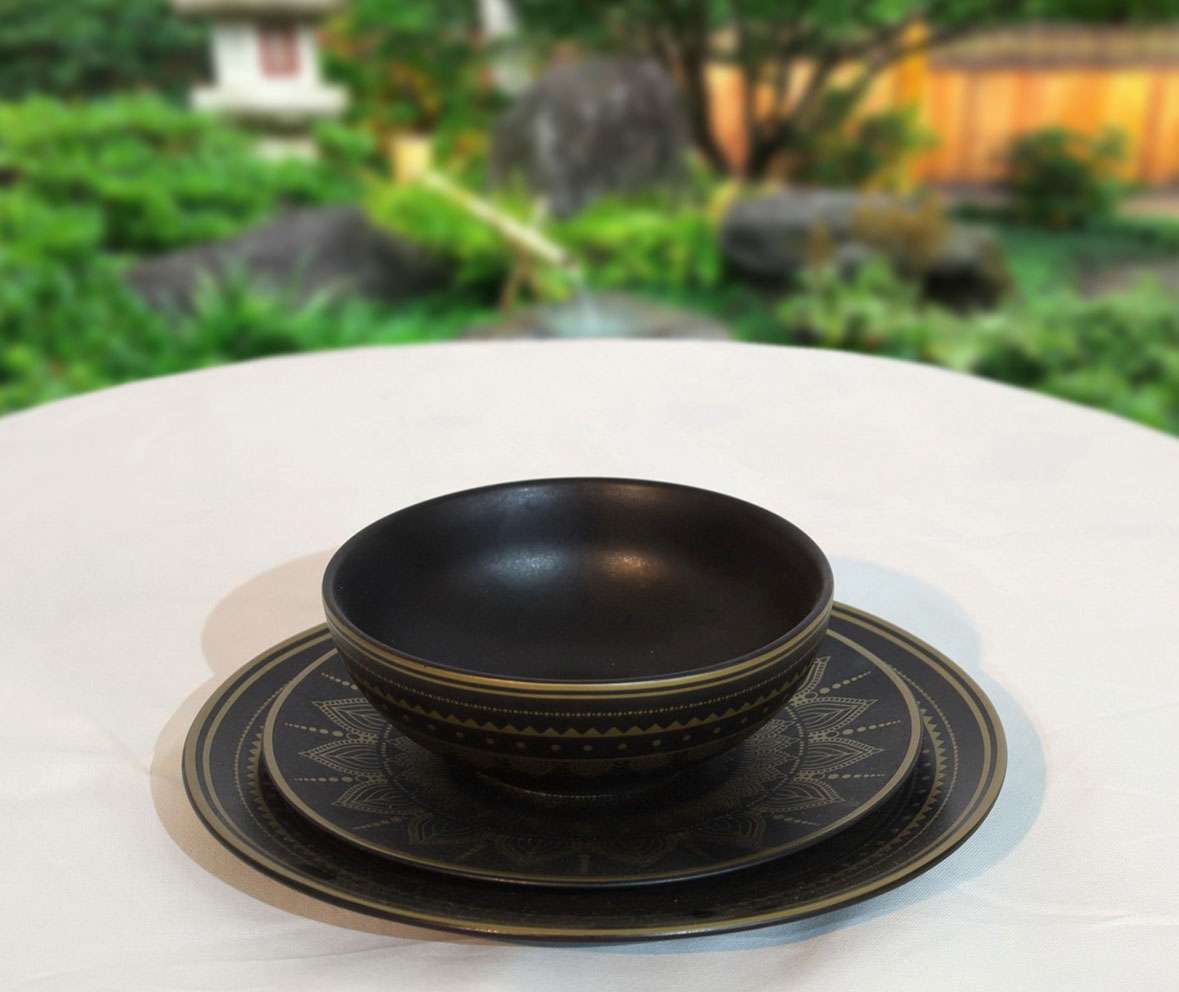 Ceramic Color : Black with gold accents and trim