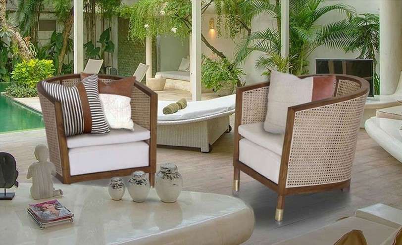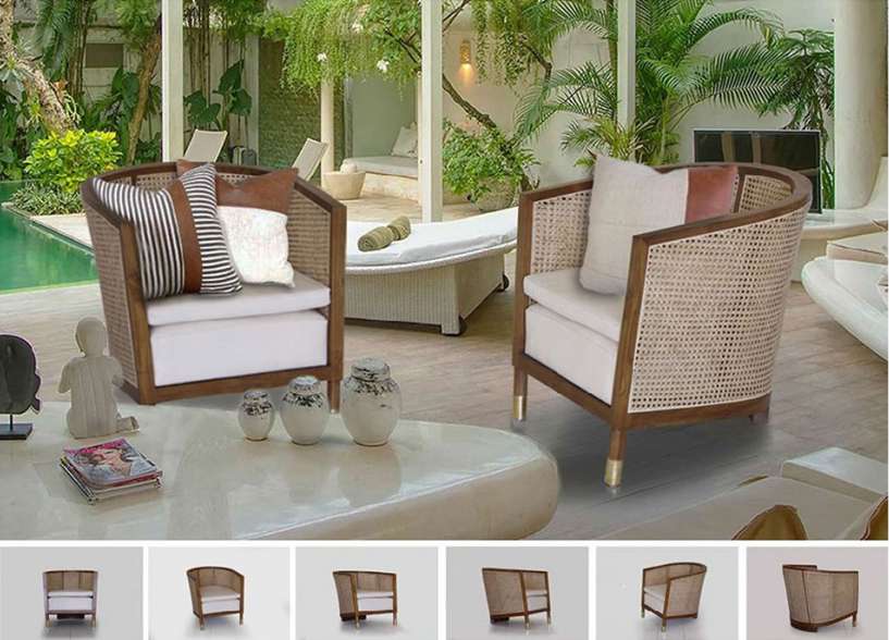 Material : Plantation Teak + Rattan + Leather / Fabric + Brass