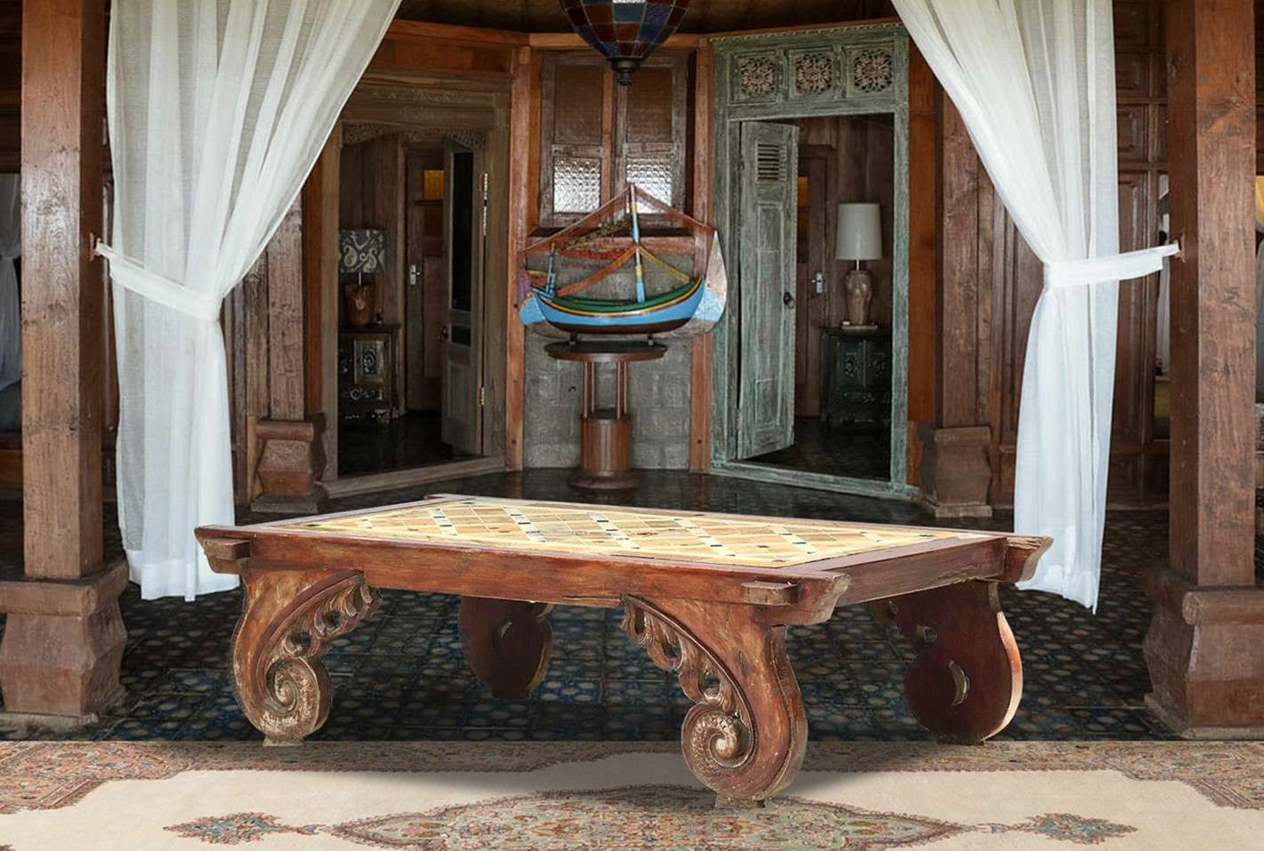Material : Plantation Teak + Ceramic Wood Color : Natural