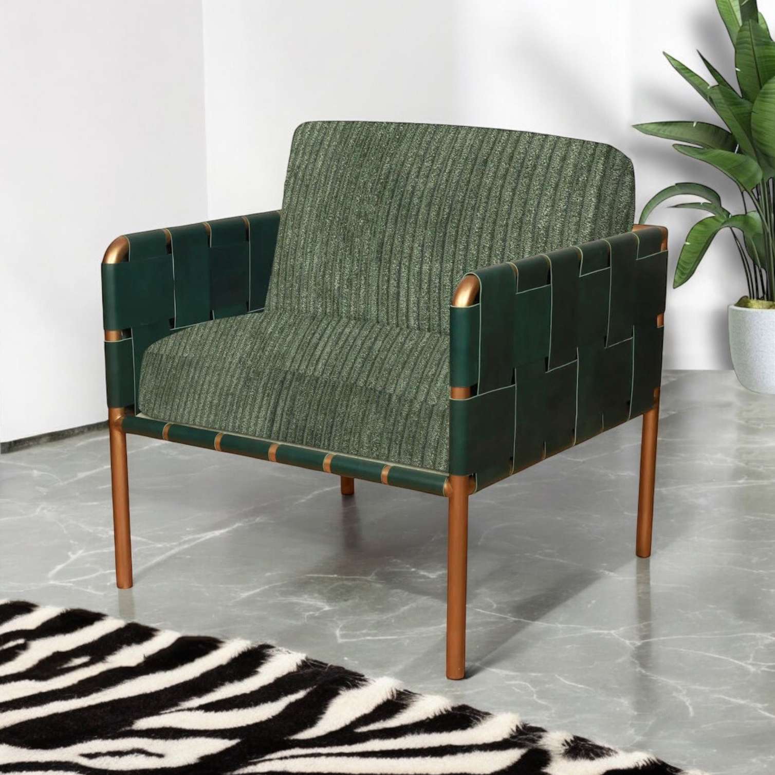 Lounge Chair " CABELLO " With Leather Back And Fabric Seat And Metal Frame