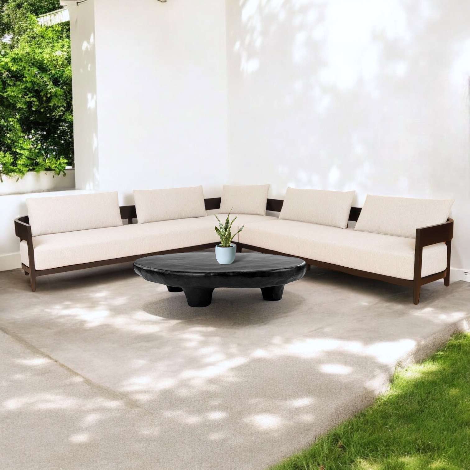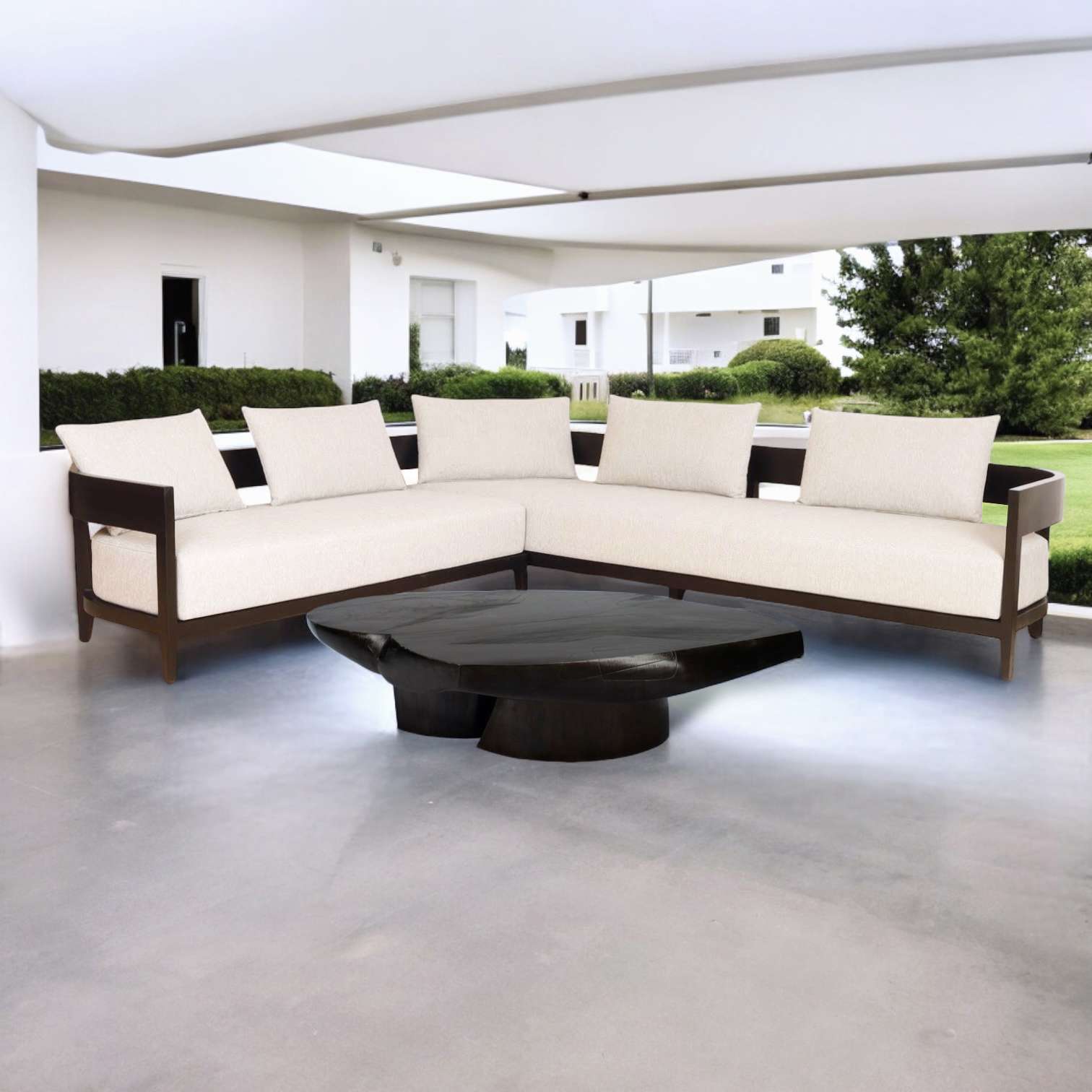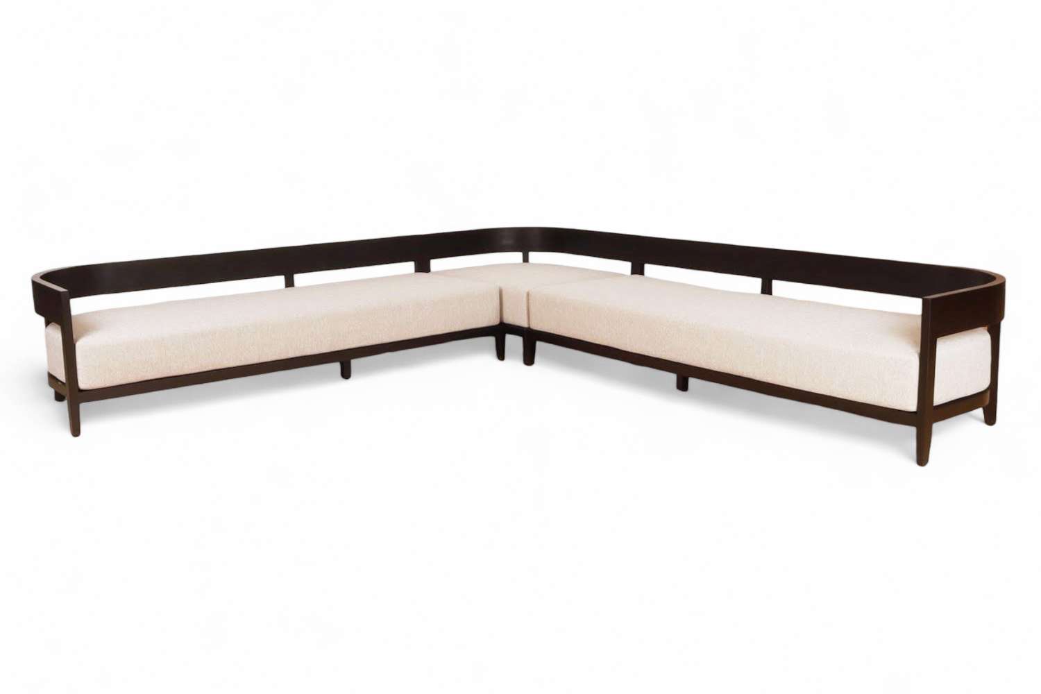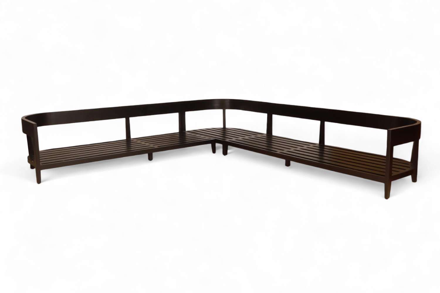 Sofa L-Shape With 2 Size Round Back With Fabric Cushion Plantation Teak