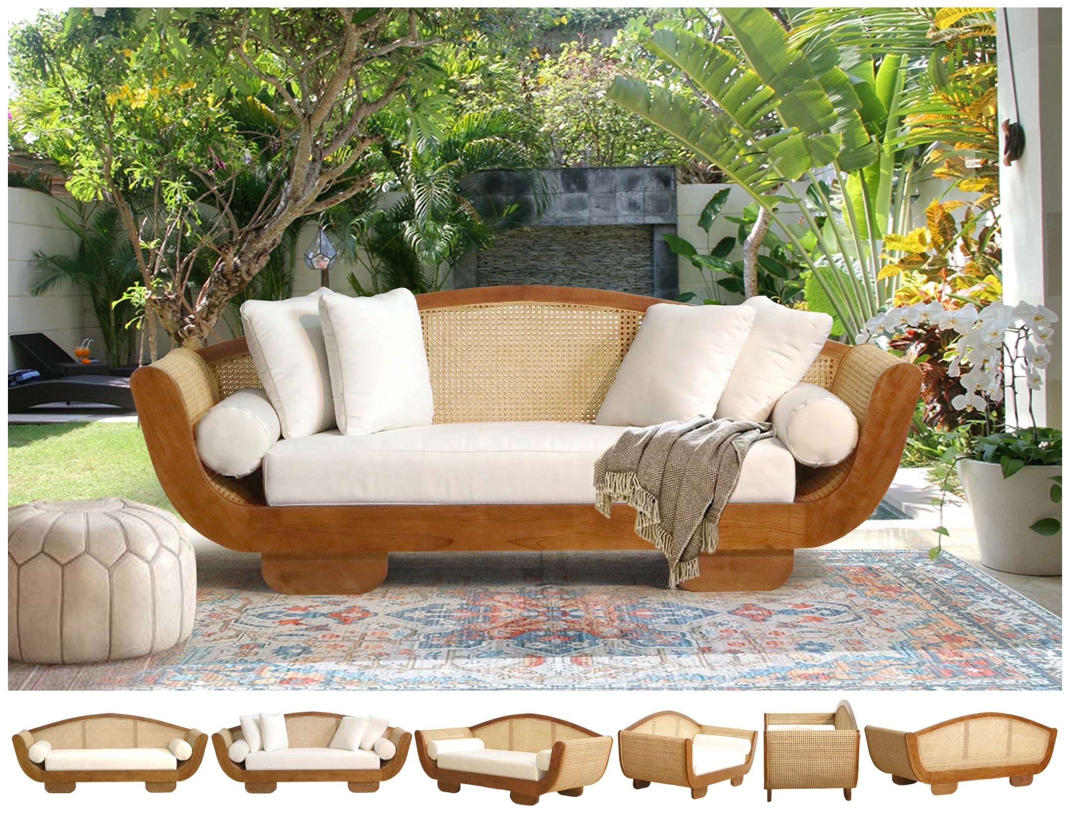 Material : Plantation Teak + Rattan + Fabric