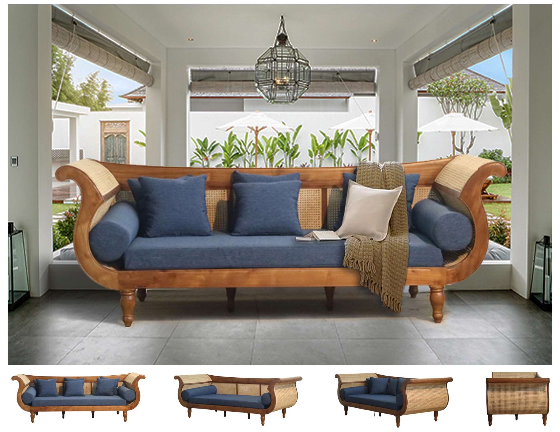 Material : Plantation Teak + Rattan + Fabric