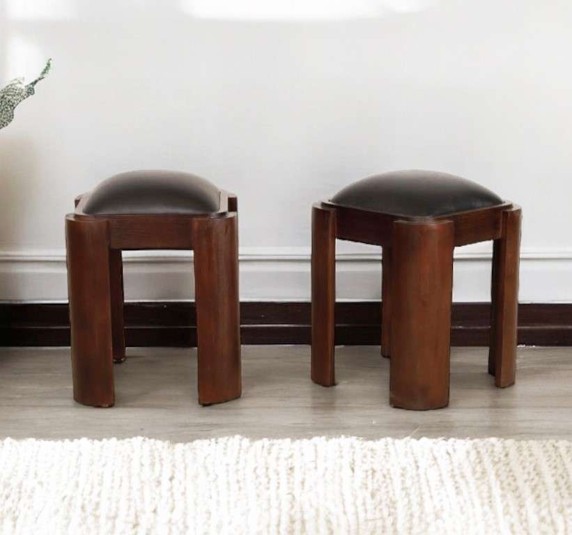 Stool With Leather And Plantation Teak