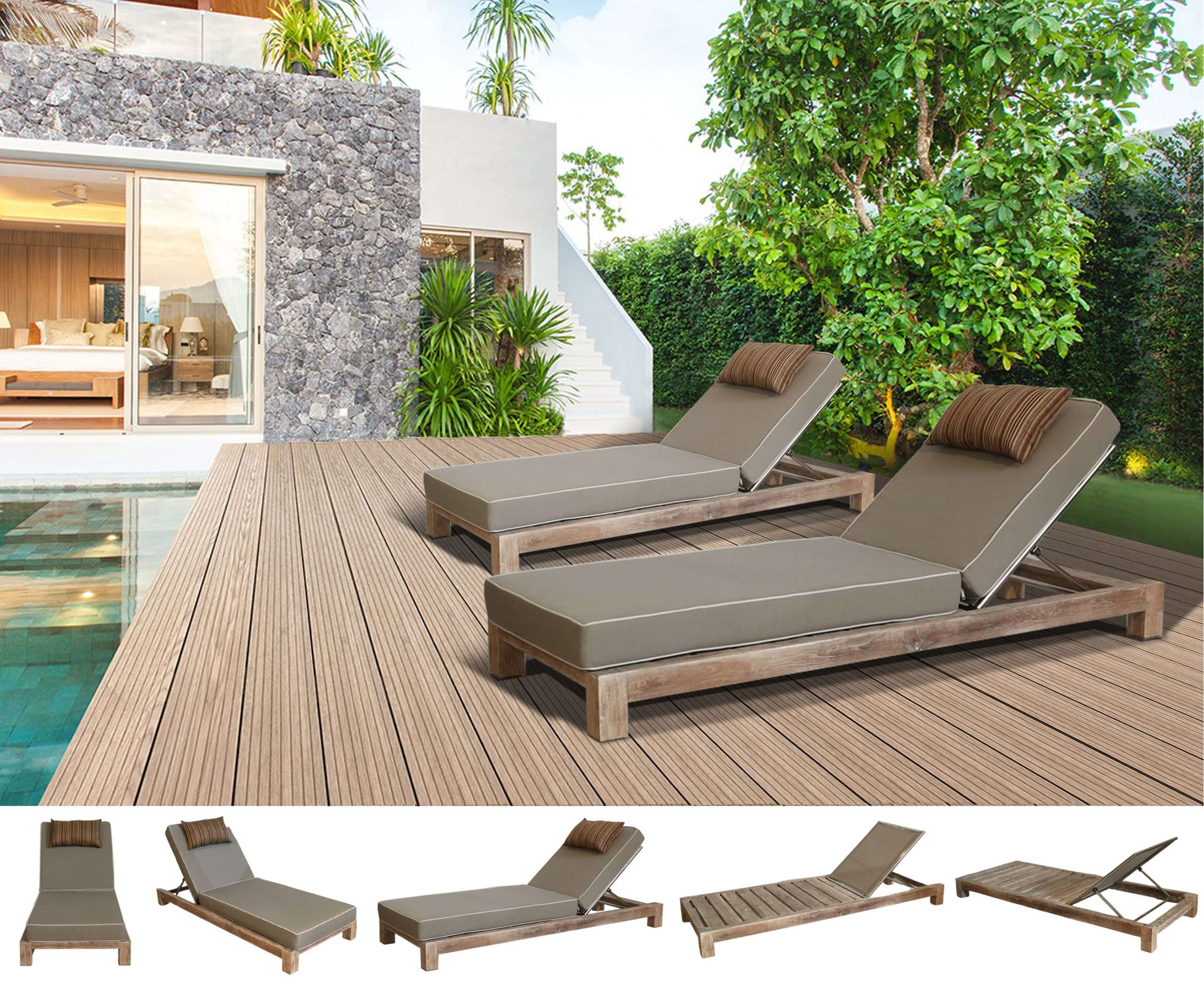 Material : Plantation Teak + Fabric + Stainless Steel