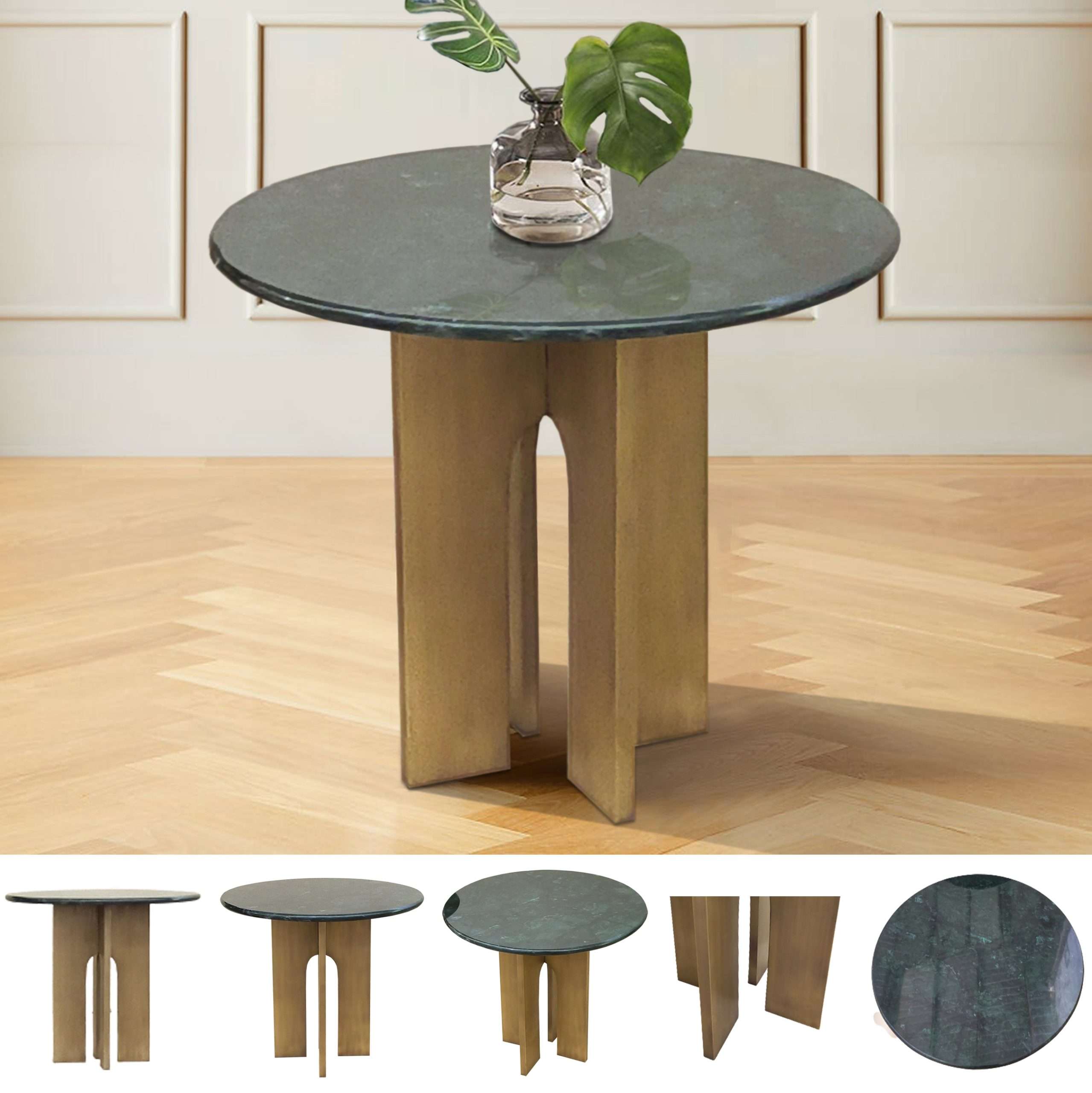 Table Corridor Green Marble Top With Brass Leg