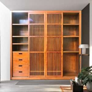 Wardrobe " KONOA " Woven Rattan Top Plantation Teak